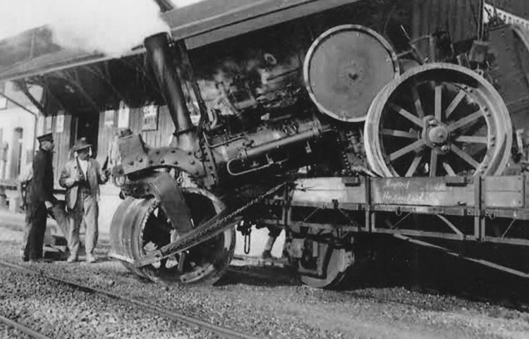 The local Thun roller was being moved by rail on one occasion and unfortunately came to grief at Oberdiessbach station on the Emmental-Burgdorf-Thun railway, presumably when it was either being loaded - or more likely off-loaded.